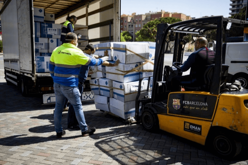 FC Barcelona Foundation receives the first batch of protective suits on April 12.